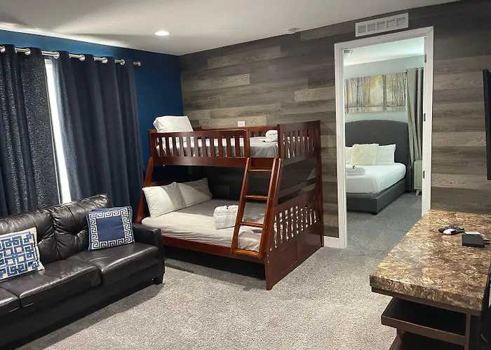 Offering a Jacuzzi for a relaxing experience, 350-360 Large Family Home By Disney is located approximately 10 minutes' drive from Ship Wreck Island Water Park. Providing guests with Wi-Fi and complimentary private parking, the 13-bedroom villa is at a distance of 3 km from Mystic Dunes Golf Club at Mystic Dunes Resort.